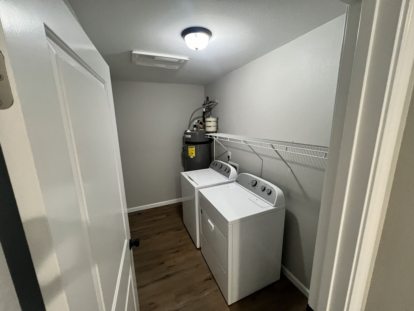 The easy care single car garage space is finished and the floor has an epoxy coating. There is plenty of parking besides your single car garage. Back yard is fenced separately from the next door home. Back yard space is large enough so you can store a Boat, a classic car, or Motorhome/Trailer right inside the fenced area. Additional parking outside the fence and on the street, for working vehicles