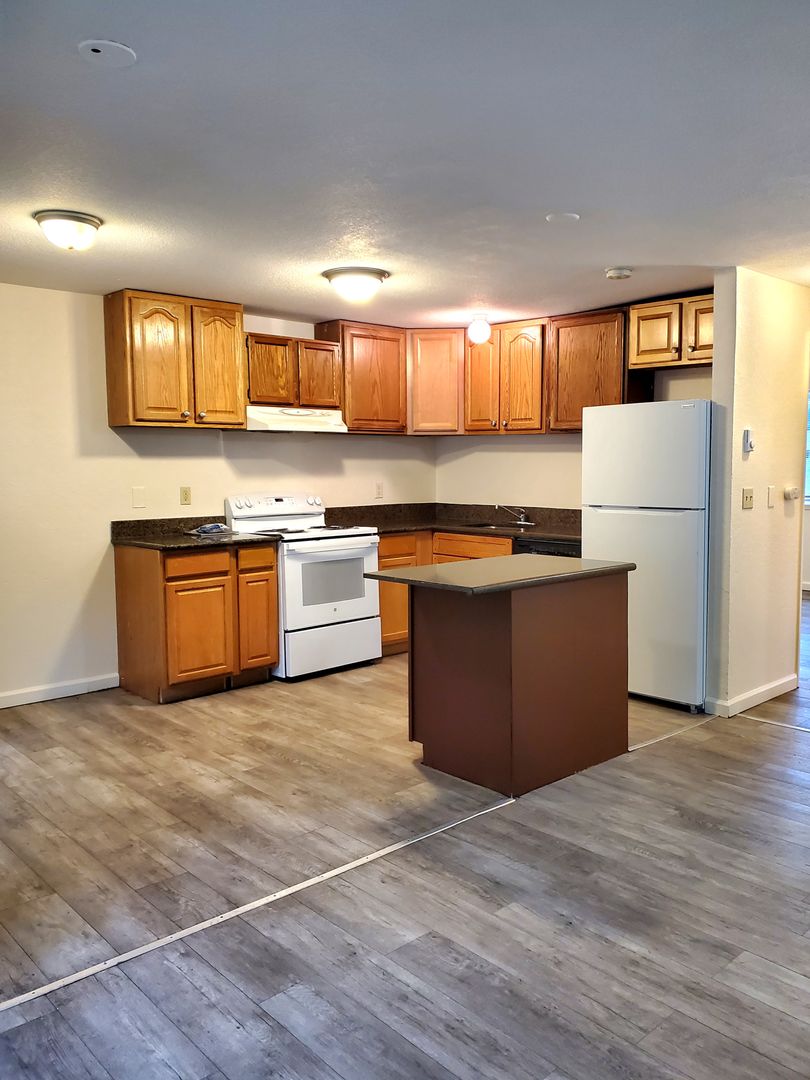 4 plex apartment has 2 bedrooms, 1 bath, about 775 sf, laminate flooring throughout, fresh paint, open floor plan in the kitchen / living room and dining area. Kitchen has a center island, dishwasher, glass top range & refrigerator. Small deck with additional storage off the dining area. On site coin op laundry. Lessee pays electric, internet & cable directly. Boys & Girls Club within easy walking distance. Rent is $1495, with a $1000 Security Deposit and $100 per month for water, sewer & refuse. Small ADULT pets under 20 lbs considered with references, license, proof of up to date shots,