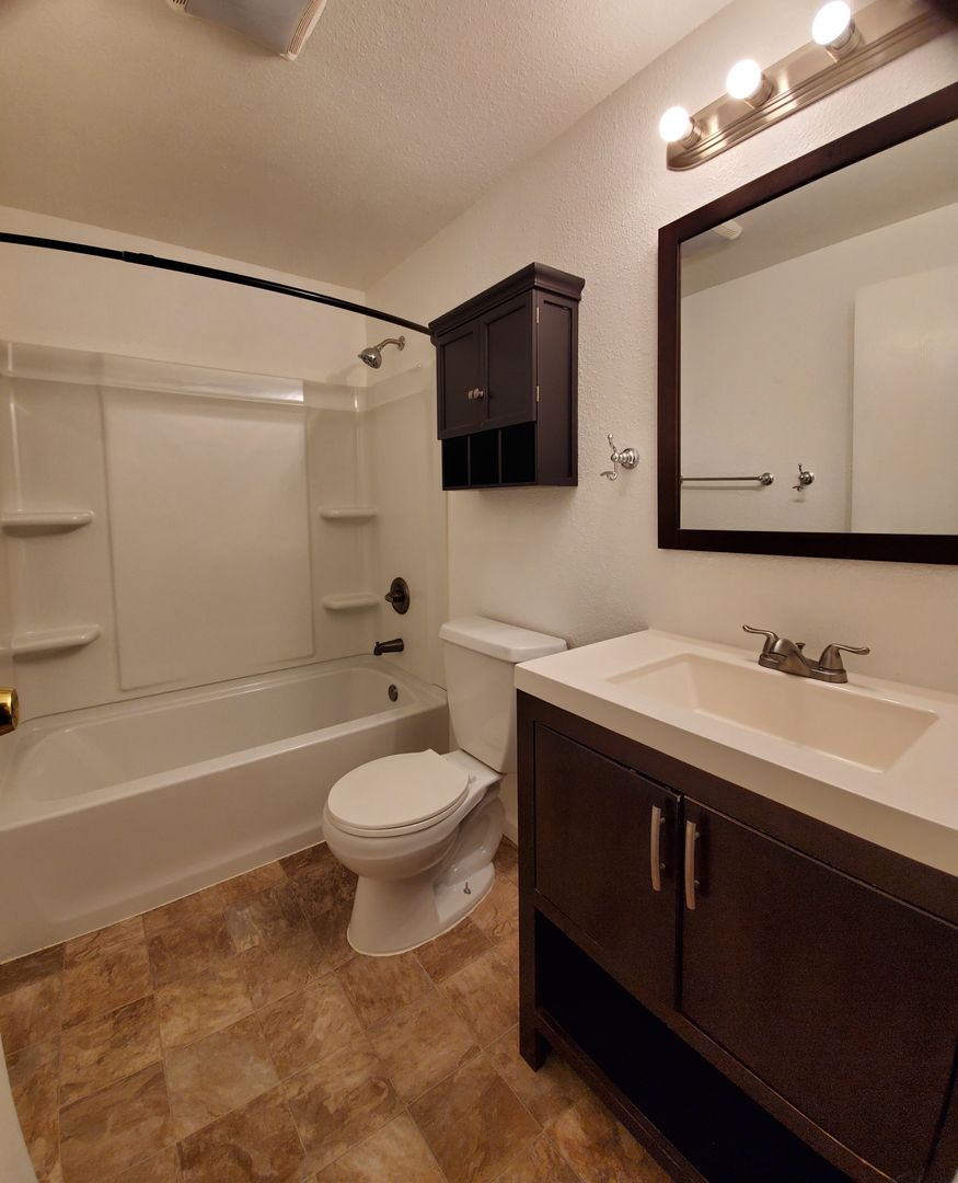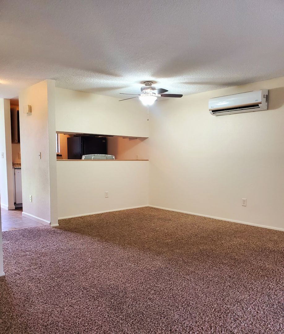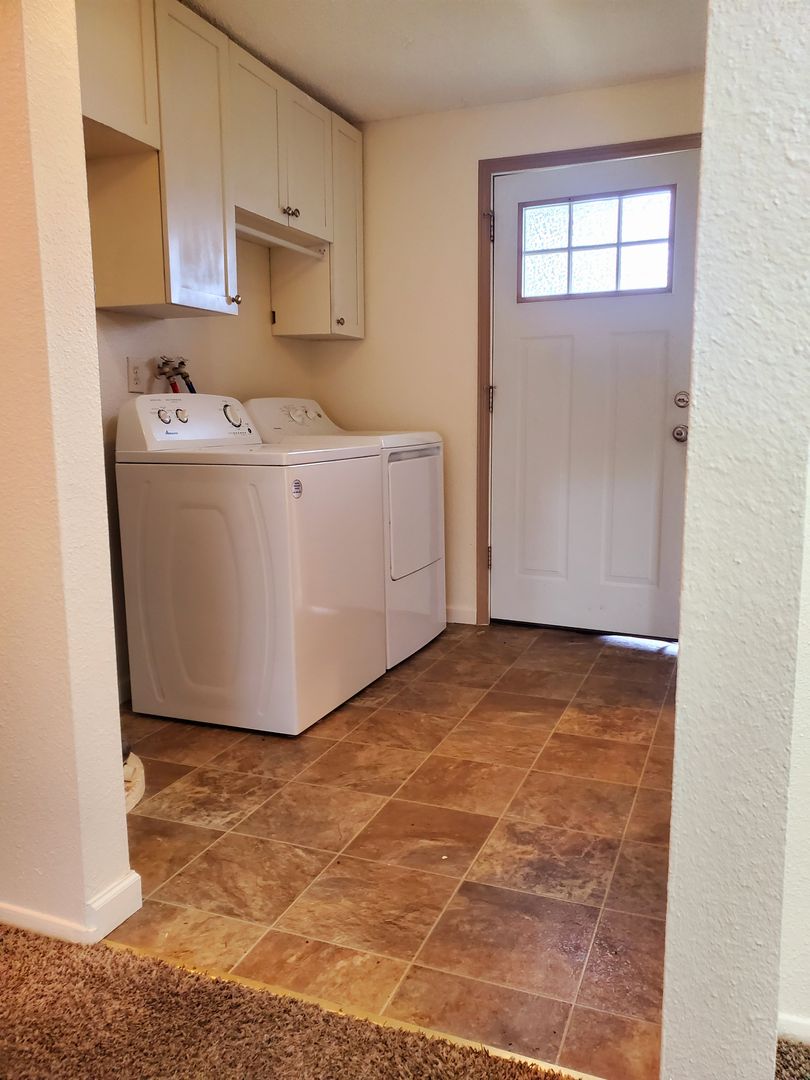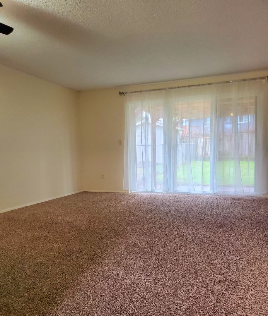 Updated 2 bedroom, 1 bath has a efficient galley style kitchen with R&R, DW and microwave, open to living room, ductless heat pump, Washer & Dryer, covered patio out the sliding glass door to your own fenced back yard. Off street parking has enough room for a RV, and there is a separate storage shed! Located at the end of a cul de sac. Small Adult pets (under 20lbs adult size) will be considered with references, up to date vaccine's and $25 per month pet rent